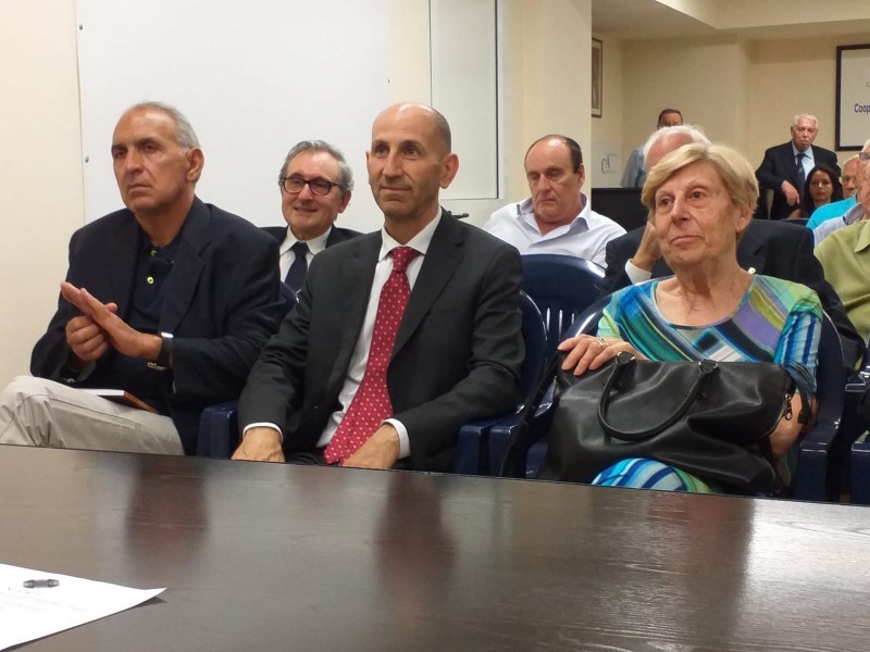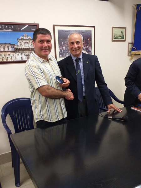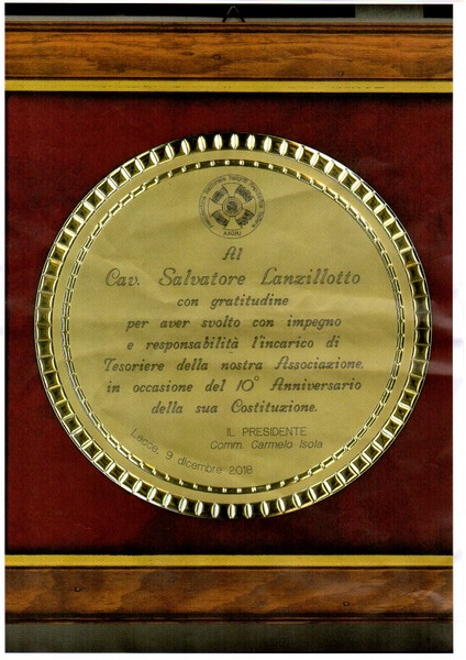 Il Presidente ANIRI Commendatore Carmelo Isola consegna il riconoscimento al Cav. Salvatore Lanzillotto.